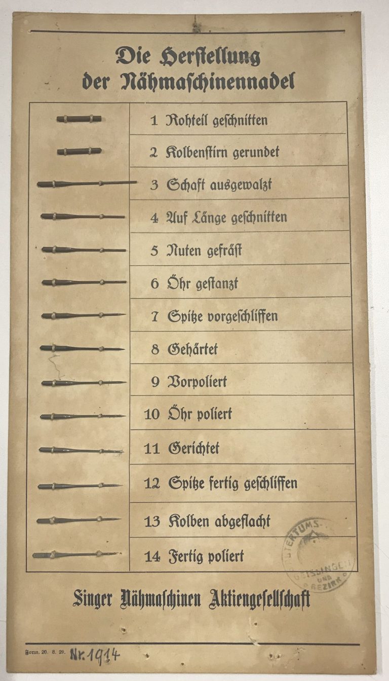 Schaubild „Die Herstellung der Nähmaschinennadel“
